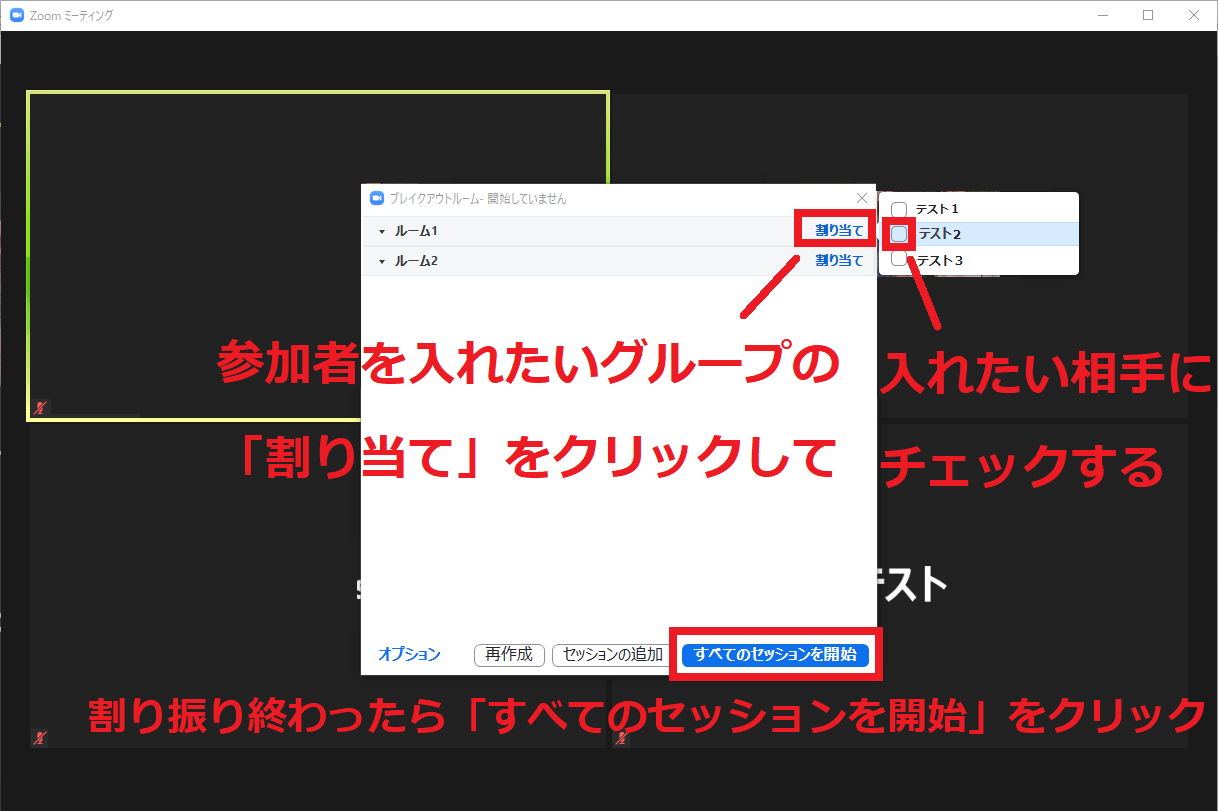 これからブレイクアウトセッションの操作方法をセッションの分け方に応じて説明していきます。