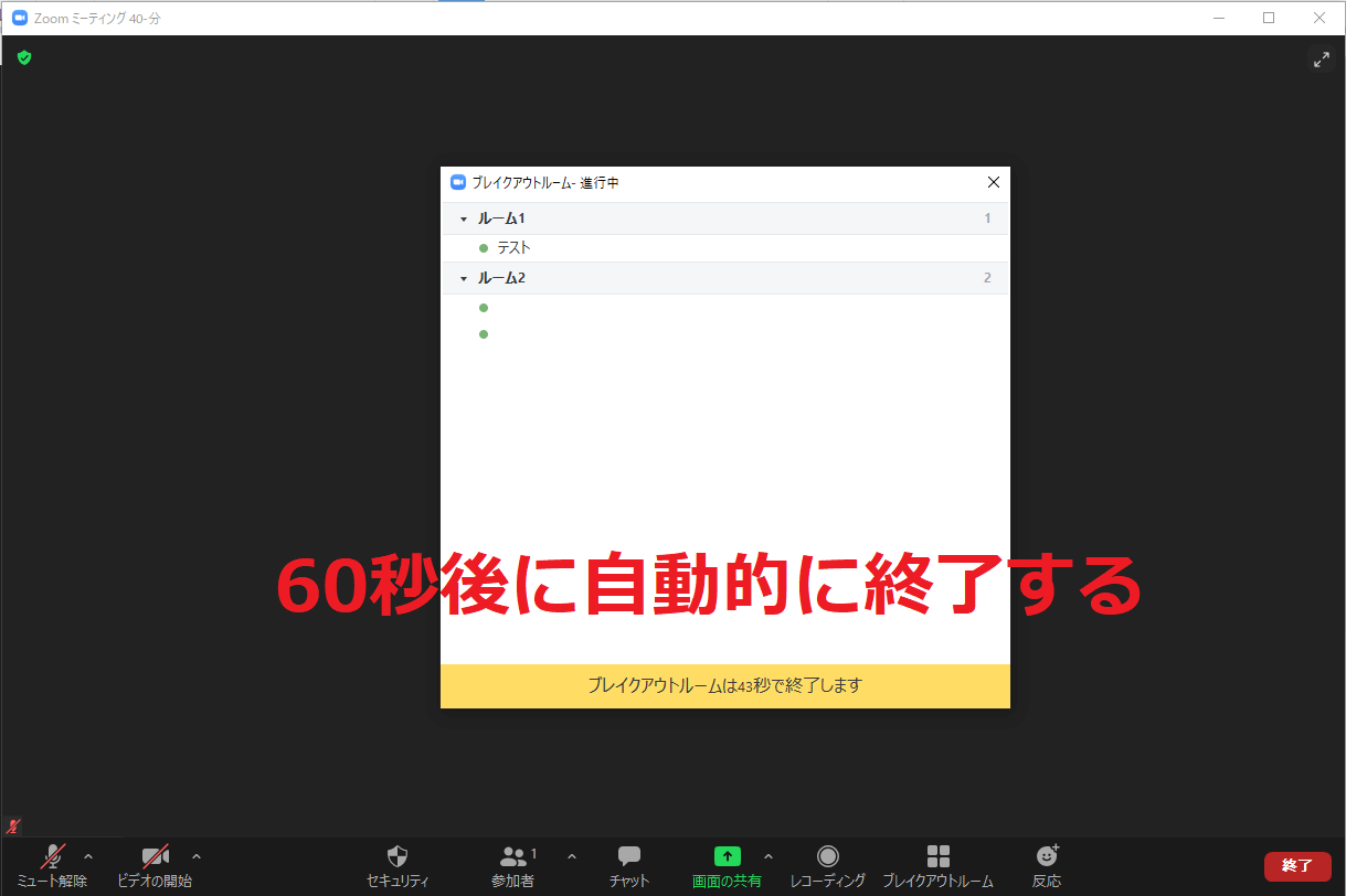 ブレイクアウトセッションは参加者が任意のタイミングで自分で戻ってくることも可能ですが、基本的にはホストが終了のタイミングを決めます。